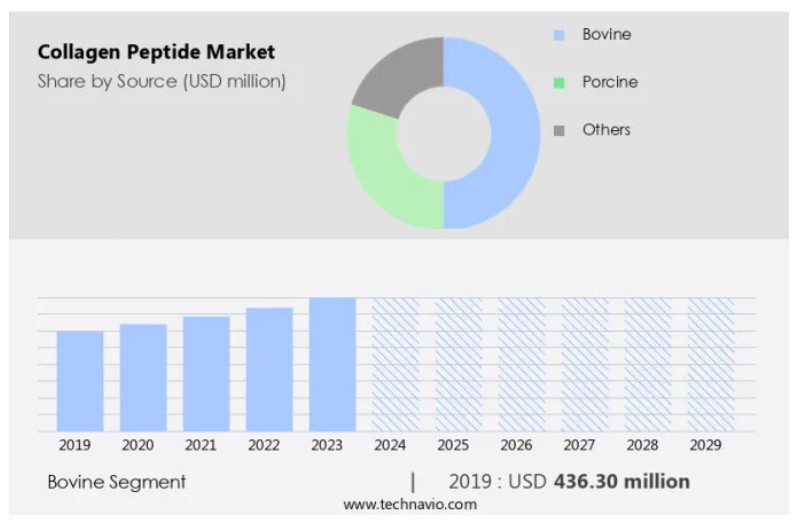글로벌 콜라겐 펩타이드 시장 : 소스별 (소, 돼지, 기타), 한국, 아시아, 미국, 2025-2029, 시장 규모