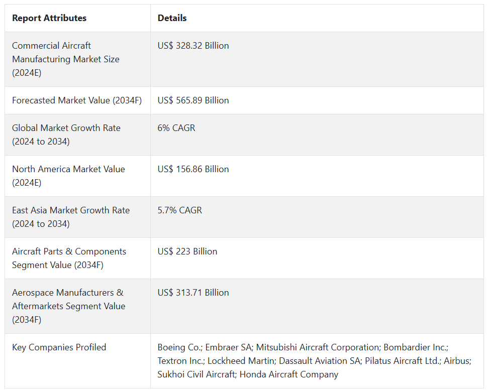 상업용 항공기 제조 시장 전망 (2024~2034년)