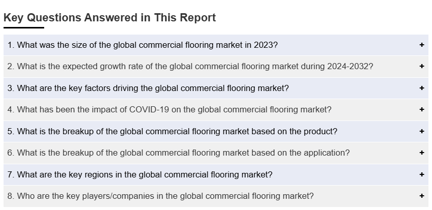 IMARC 그룹은 2024-2032년 기간 동안의 글로벌, 지역, 국가 수준의 예측과 함께, 글로벌 상업용 바닥재 시장 보고서의 각 하위 부문에서 주요 트렌드에 대한 분석을 제공합니다. 저희 보고서는 제품과 용도에 따라 시장을 분류했습니다.
