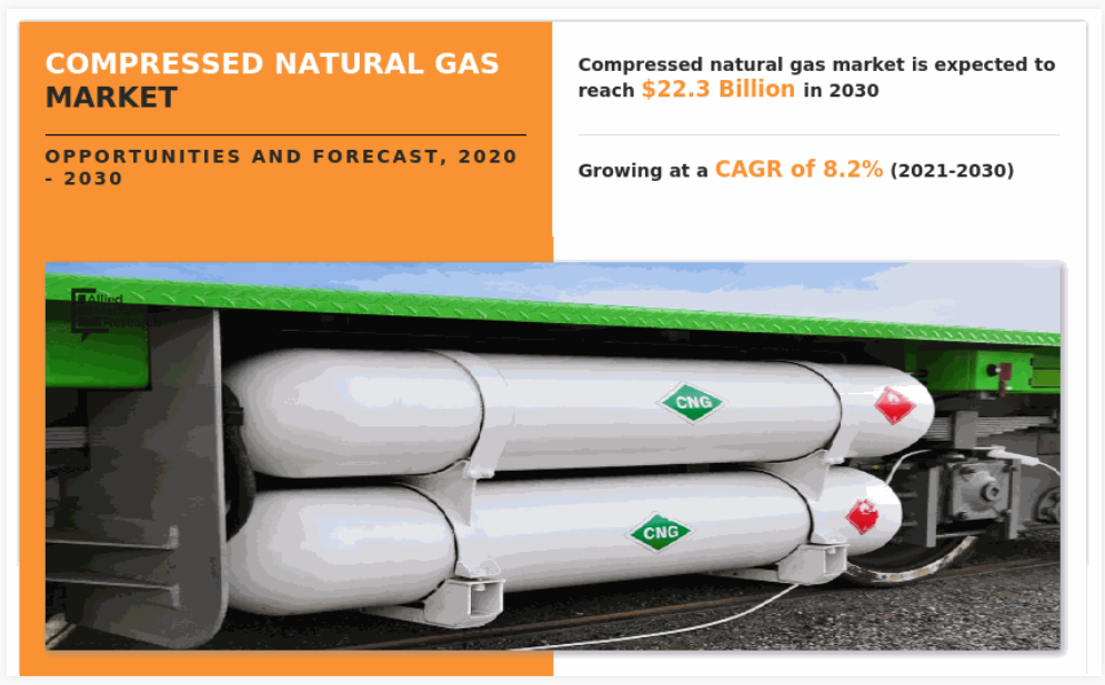 2020년 전 세계 압축 천연가스 시장 규모는 99억 달러로 추정되었으며, 2030년에는 223억 달러에 이를 것으로 예상되며, 2021년부터 2030년까지 연평균 성장률 8.2%로 성장할 것으로 전망됩니다. 압축 천연가스(CNG)는 메탄과 미량의 경질 탄화수소, 질소, 이산화탄소가 혼합된 것으로, 이탄이 무연탄으로 지질학적으로 변형되는 과정에서 생성됩니다. 석유와 석탄 매장량의 고갈과 가스 연료의 배출 특성의 한계로 인해 산업 부문의 지속 가능한 성장에 중요한 역할을 합니다. 특정 CNG는 더 높은 성능이나 안정성이 필요한 다양한 응용 분야에서 맞춤형 최종 용도로 사용하도록 설계되었습니다.