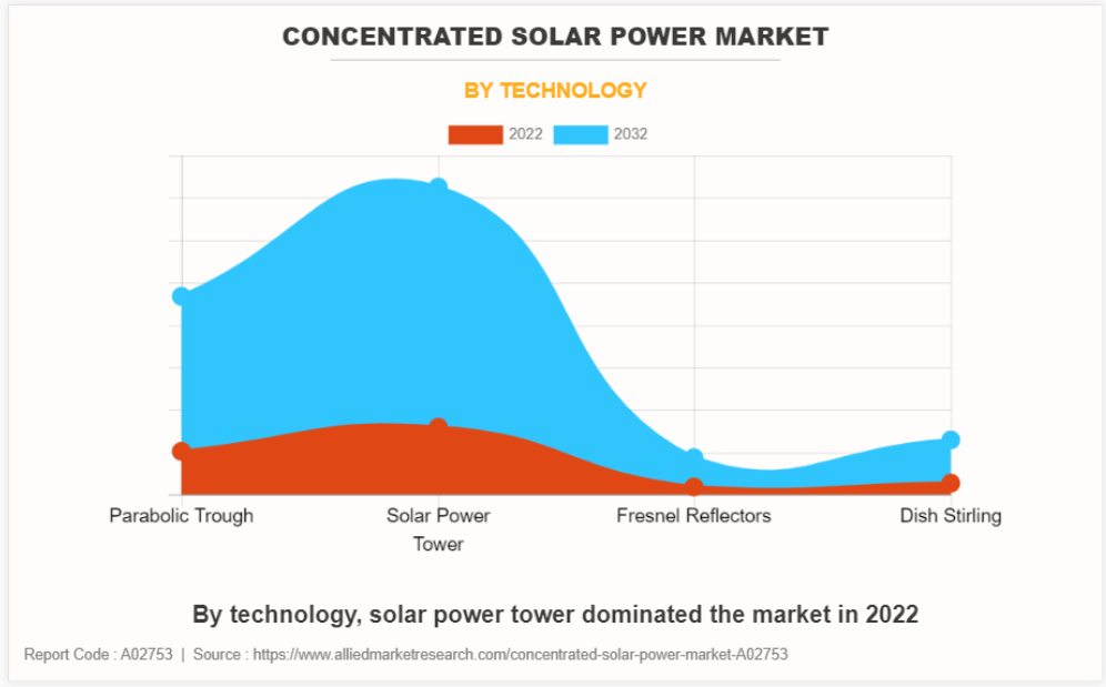 기술적으로, 태양광 발전 타워 부문은 2022년 세계 집광형 태양광 발전 시장 매출의 절반 이상을 차지했으며, 예측 기간 동안 그 우위를 유지할 것으로 예상됩니다. 태양광 발전 타워는 다른 CSP 기술에 비해 에너지 변환 효율이 더 높습니다. 더 높은 온도를 달성할 수 있는 잠재력을 가지고 있어, 증기 터빈을 통해 더 효율적인 전기 생산이 가능합니다. 이러한 효율성 요인으로 인해 태양광 발전 타워는 유틸리티 규모의 전력 생산에 매력적인 선택입니다. 또한, 소재, 수광기 설계, 헬리오스탯 제어에 대한 지속적인 연구와 기술 발전은 태양광 타워 시스템의 효율성을 높이고 비용을 절감하는 데 기여했습니다. 이러한 모든 요인으로 인해 예측 기간 동안 태양광 타워에 대한 수요가 증가할 것으로 예상됩니다.