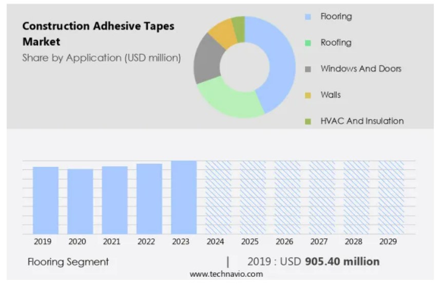 글로벌 건축용 접착 테이프 시장 : 용도별 (바닥재, 지붕재, 창호 및 문, 벽체, HVAC 및 단열재), 한국, 아시아, 미국, 2025-2029, 시장 규모
