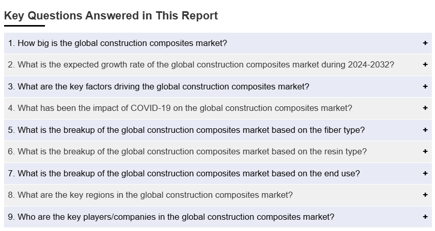 IMARC 그룹은 2024-2032년 기간 동안의 글로벌, 지역, 국가 수준에서의 예측과 함께, 글로벌 복합 건축 자재 시장의 각 부문에서 주요 트렌드에 대한 분석을 제공합니다. 저희의 보고서는 섬유 유형, 수지 유형, 최종 용도에 따라 시장을 분류했습니다.