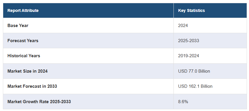 전 세계 임상시험수탁기관(CRO) 서비스 시장 규모는 2024년에 770억 달러에 달했습니다. IMARC Group은 2025~2033년 동안 8.6%의 성장률(CAGR)을 보이며 2033년까지 시장이 1,621억 달러에 이를 것으로 예상하고 있습니다. 이 시장은 비용 효율성, 기술 발전 및 혁신 기술의 통합, 개인 맞춤형 의약품 및 생물학적 제제에 대한 강조가 증가함에 따라 임상시험을 CRO에 아웃소싱하는 사례가 증가하면서 꾸준히 성장하고 있습니다.