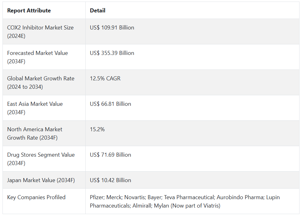 Fact.MR에 따르면, COX 2 억제제 시장은 앞으로 확장될 것으로 추정됩니다.
