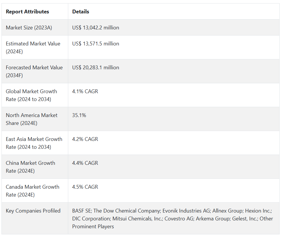 아미노의 교차 결합제 화학 부문은 2024년부터 2034년까지 13억 5,600만 달러에 달하는 절대적인 성장 기회를 제공할 것입니다.