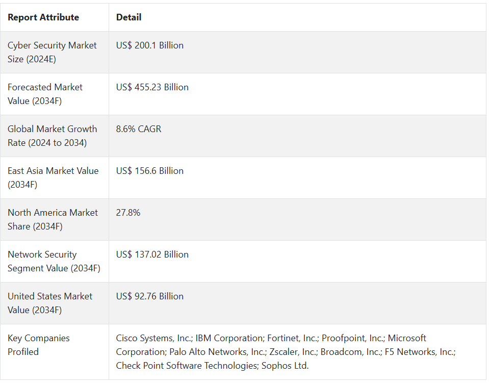 Fact.MR은 사이버 보안 시장의 주요 공급업체들의 가격대, 매출 성장, 생산 능력, 투기적 기술 확장에 대한 자세한 정보를 전 세계에 걸쳐 제공하는 새로운 시장 보고서입니다.