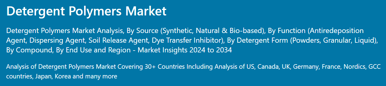 Fact.MR은 최근에 발표한 보고서에서 지역별 주요 세제 폴리머 제조업체의 가격대, 매출 성장, 생산 능력, 투기적 기술 확장에 대한 자세한 정보를 제공했습니다.