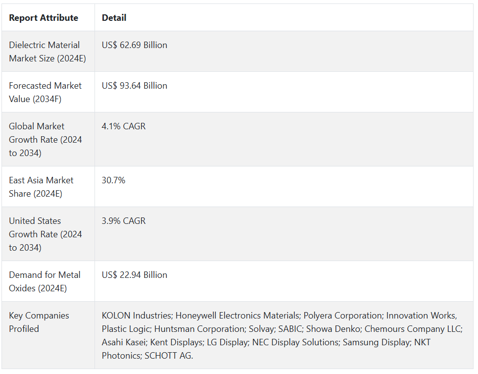 유전체 재료에 대한 수요는 2024년부터 2034년까지 연평균 4.1%의 성장률을 보일 것으로 분석됩니다.