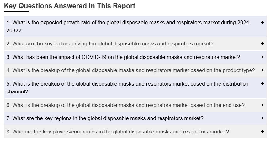 경쟁 환경: 글로벌 일회용 마스크 및 인공호흡기 시장의 경쟁 환경은 기존 플레이어와 신규 진입자가 혼합되어 있는 것이 특징입니다. 경쟁은 제품 혁신, 가격 전략 및 유통 채널에 의해 주도됩니다. 기업들은 제품의 품질, 효과, 편안함, 스타일 및 친환경성과 같은 추가 기능을 기반으로 경쟁합니다. 기업들이 시장 입지를 확대하고 제품 포트폴리오를 강화하기 위해 전략적 파트너십과 인수를 하는 것은 흔한 일입니다.