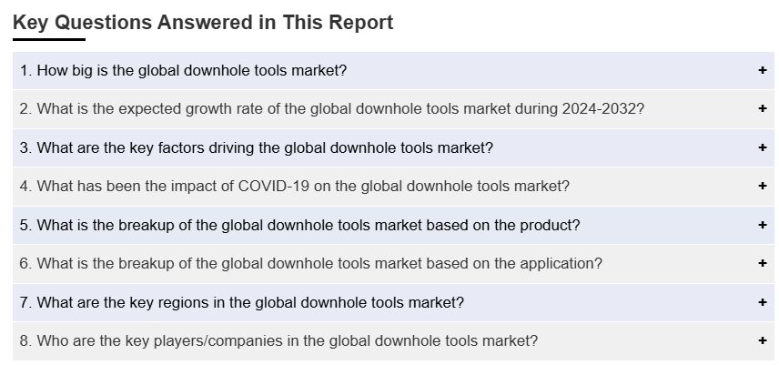 IMARC 그룹은 2024-2032년 기간 동안의 글로벌, 지역, 국가 수준의 예측과 함께, 글로벌 다운홀 도구 시장 보고서의 각 하위 부문에서 주요 트렌드에 대한 분석을 제공합니다. 저희 보고서는 제품과 응용 프로그램에 따라 시장을 분류했습니다.