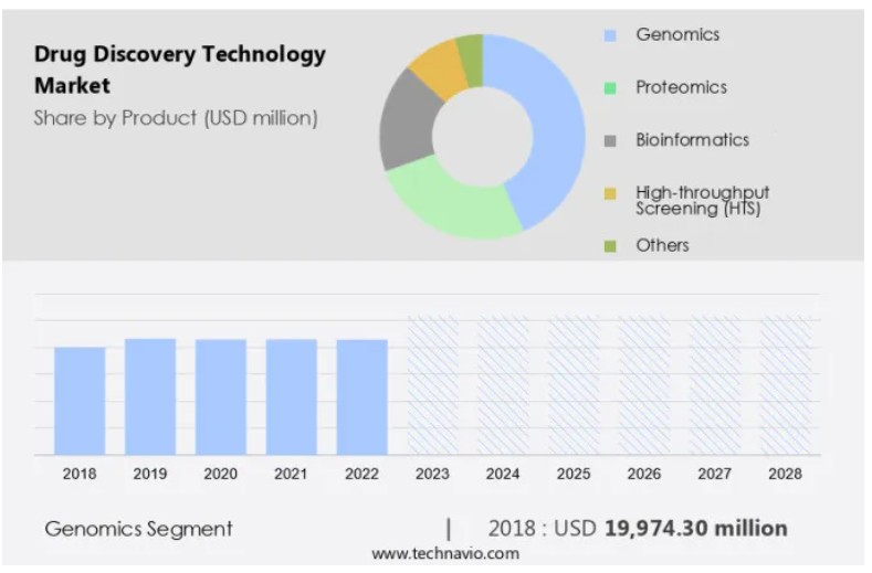 신약 개발 기술 시장 규모는 2023년부터 2028년까지 연평균 성장률(CAGR) 9.2%로 미화 273억 1천만 달러 증가할 것으로 예상됩니다.