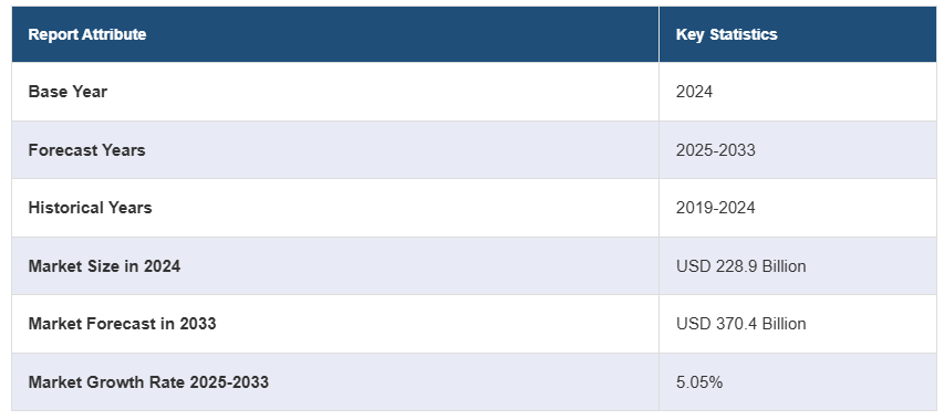 2024년 전 세계 내구 의료 장비(DME) 시장 규모는 2,289억 달러에 달했습니다. 앞으로 IMARC 그룹은 2025~2033년 동안 5.05%의 성장률(CAGR)을 보이며 2033년까지 시장이 3,704억 달러에 이를 것으로 예상하고 있습니다.