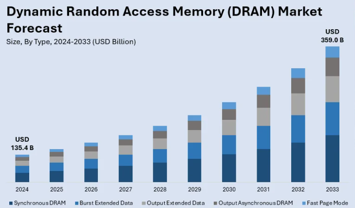 | 동적 랜덤 액세스 메모리(DRAM) 시장은 AI 및 머신러닝(ML) 기술의 확산에 힘입어 급성장하고 있습니다. 2024년에는 전 세계 ML 시장 규모가 310억 달러에 이를 것으로 예상되며, 이에 따라 DRAM의 수요가 증가하고 있습니다. DRAM은 AI 모델 학습에 필수적이며, 삼성과 엔비디아의 협력으로 고대역폭 메모리(HBM) 칩이 개발되면서 시장 인사이트가 확대되고 있습니다. 기업들은 고급 DRAM을 활용하여 AI 하드웨어를 최적화하고 있습니다. 공급망 문제와 가격 변동을 해결하기 위해 기업들은 공급망 다각화와 장기 계약 체결 등의 전략을 모색하고 있습니다. SK하이닉스는 새로운 DRAM 생산 공장을 건설하기 위해 38억 6,000만 달러를 투자할 계획이며, 이는 생산성과 공급 안정성을 높이는 데 기여할 것입니다. DRAM의 수요는 클라우드 컴퓨팅, AI, 빅 데이터 분석 등 다양한 산업에서 증가하고 있습니다. DRAM 시장은 동기식 DRAM, DDR4, 소비자 가전 등으로 세분화됩니다. 동기식 DRAM은 가장 큰 시장 점유율을 차지하며, DDR4는 속도와 전력 효율성의 균형이 뛰어나 많은 기업과 개인에서 사용되고 있습니다. 소비자 가전 시장은 26.9%의 점유율을 기록하며 스마트폰, 노트북, 게임 콘솔 등에서 DRAM의 필요성이 증가하고 있습니다. 아시아 태평양 지역은 DRAM 시장에서 35.0% 이상의 점유율을 차지하며, 주요 메모리 칩 제조업체가 다수 위치하고 있습니다. 이 지역의 클라우드 컴퓨팅과 AI 기반 애플리케이션의 성장으로 DRAM 수요가 더욱 증가하고 있습니다. 미국은 AI, 클라우드 컴퓨팅, 스마트 기기 수요 증가로 인해 DRAM 시장에서 중요한 위치를 차지하고 있으며, 정부의 반도체 제조 지원 정책도 시장 성장에 기여하고 있습니다. 결론적으로, DRAM 시장은 AI 및 ML 기술의 발전, 공급망 개선, 고성능 메모리 솔루션의 필요 증가 등 여러 요인으로 인해 계속해서 성장할 것으로 예상됩니다. 제조업체들은 혁신을 통해 DRAM 기술을 발전시키고 있으며, 다양한 산업에서의 수요 증가가 시장 확대를 이끌고 있습니다. |