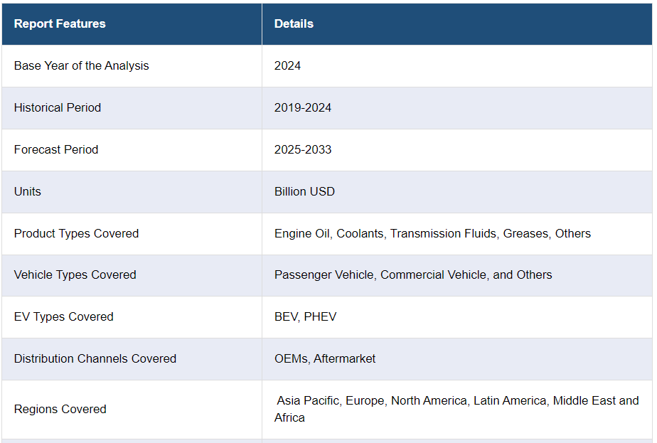 IMARC 그룹은 2025-2033년 글로벌, 지역 및 국가 수준에서의 예측과 함께 글로벌 전기 자동차 유체 시장의 각 부문의 주요 동향에 대한 분석을 제공합니다. 이 보고서는 제품 유형, 차량 유형, 전기차 유형 및 유통 채널을 기준으로 시장을 분류했습니다.