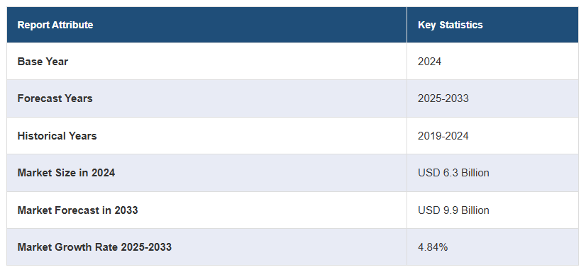 전 세계 전기 저항기 시장 규모는 2024년 63억 달러에 달했습니다. 앞으로 IMARC 그룹은 2025~2033년 동안 4.84%의 성장률(CAGR)을 보이며 2033년까지 시장이 99억 달러에 달할 것으로 예상하고 있습니다. 발전 및 배전에 대한 수요 증가, 건설 활동의 상당한 증가, 전기 자동차(EV)의 광범위한 채택이 시장을 이끄는 주요 요인 중 일부입니다.