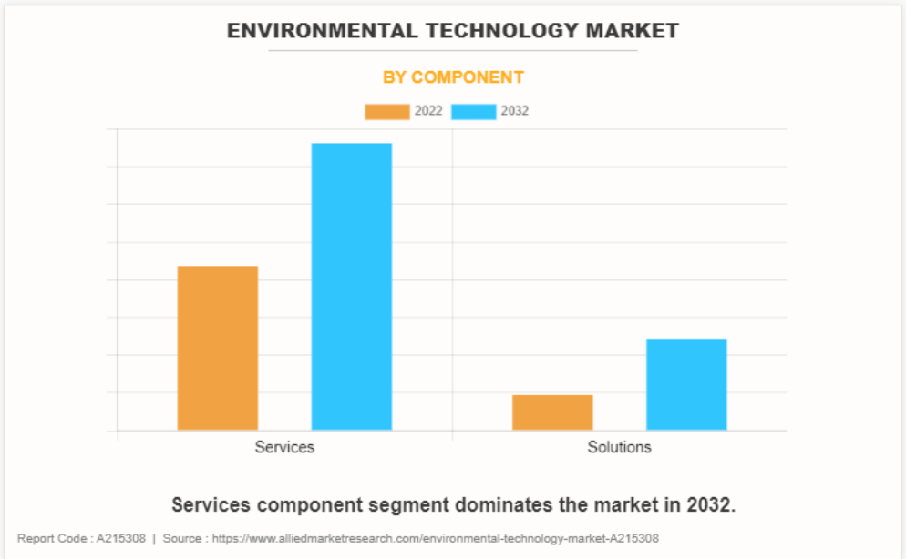 구성요소별로 서비스 부문은 2022년에 가장 높은 시장 점유율을 차지했으며, 이는 전 세계 환경 기술 시장 매출의 거의 4분의 3을 차지하고 있으며, 예측 기간 내내 이러한 선도적 지위를 유지할 것으로 추정됩니다. 환경 서비스는 다른 사람들이 환경 문제를 해결하고, 규정을 준수하며, 지속 가능성 관행을 개선할 수 있도록 전문가와 조직이 제공하는 전문 지식, 지침 및 지원을 의미합니다.