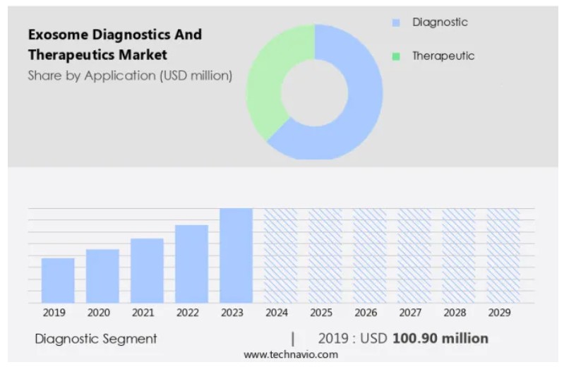 엑소좀 진단 및 치료제 시장 규모는 2024년부터 2029년까지 연평균 성장률(CAGR) 26.5%로 10억 1천만 달러 증가할 것으로 예상됩니다.