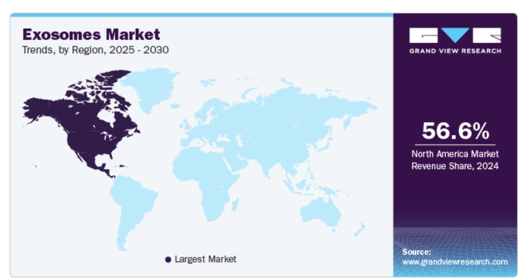 학술 및 연구 기관 부문은 2025년부터 2030년까지 상당한 CAGR로 성장할 것으로 예상됩니다. 이는 여러 연구 기관이 새로운 치료제의 발견과 개발을 위해 엑소좀 사용에 점점 더 집중하고 있기 때문입니다. 예를 들어, 카네기 멜론 대학의 연구원들은 재생 의학 분야에 적용하기 위해 엑소좀 기반 성장 인자 전달을 사용하기 위해 엑소좀 기반 세포 소통의 생물학적 활동을 이해하는 작업을 진행하고 있습니다. 이러한 연구 활동은 가까운 미래에 이 부문의 성장을 촉진할 것으로 예상됩니다.