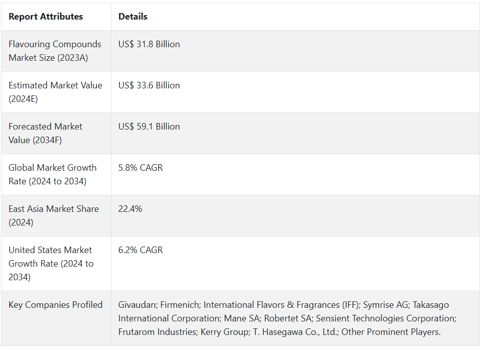 2034년 향료 화합물 시장의 예상 가치는 얼마입니까?