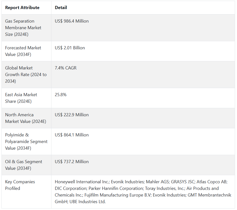 가스 분리막 시장 전망 (2024~2034)