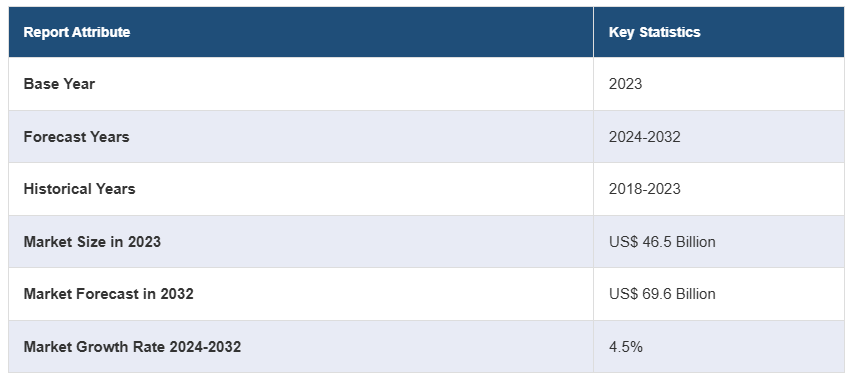2023년 글로벌 위장 치료제 시장 규모는 465억 달러에 달했습니다. 앞으로 IMARC 그룹은 2024~2032년 동안 4.5%의 성장률(CAGR)을 보이며 2032년까지 시장이 696억 달러에 이를 것으로 예상하고 있습니다.