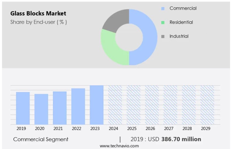상업 부문에서 유리 블록의 채택은 눈에 띄는 성장을 기록했으며, 이러한 건축 자재는 사무실, 쇼핑 센터, 호텔, 레스토랑 건설에 점점 더 많이 활용되고 있습니다. 이들은 미학과 기능성을 결합해 현대적이고 세련된 외관으로 상업 공간을 향상시키며, 소음 차단, 프라이버시 보호, 환경 요인으로부터의 보호를 제공합니다. 사무실 건물에서 유리 블록 벽과 파티션은 개방적이고 넓은 작업 환경을 조성하며, 자연광이 공간에 스며들어 밝고 활기찬 분위기를 조성합니다. 이 투명 건축 자재는 다양한 색상, 패턴, 크기로 제공되어 특정 디자인 요구사항에 맞는 맞춤형 솔루션을 가능하게 합니다.