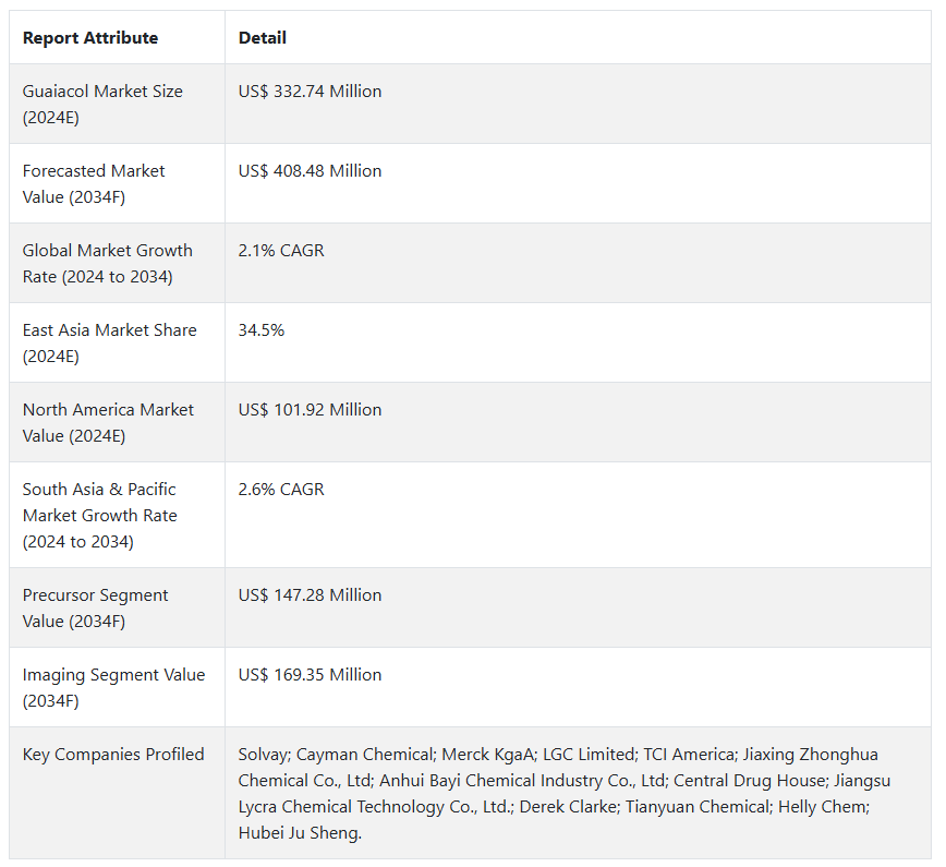 식품, 화장품, 의약품에 대한 수요 증가가 과이아콜 출하량을 크게 견인할 것으로 예상됩니다.