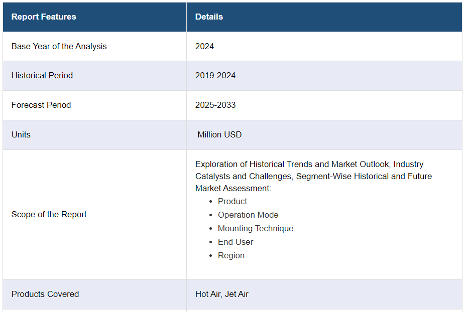 IMARC Group은 2025-2033년 글로벌, 지역 및 국가 수준의 예측과 함께 글로벌 핸드 드라이어 시장 보고서의 각 부문의 주요 동향에 대한 분석을 제공합니다. 이 보고서는 제품, 작동 모드, 장착 기술 및 최종 사용자를 기준으로 시장을 분류했습니다.