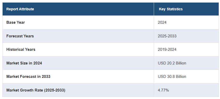 글로벌 열교환기 시장에 대한 보고서는 2024년 시장 규모가 202억 달러에 이를 것으로 전망하며, 2033년까지 308억 달러에 도달할 것으로 보입니다. 이 기간 동안 연평균 성장률(CAGR)은 4.77%로 예상되며, 재생 가능 에너지의 활용 증가, 클라우드 컴퓨팅을 위한 데이터 센터 의존도 상승, 열 에너지 저장 솔루션에 대한 관심이 주요 성장 동력으로 작용하고 있습니다.