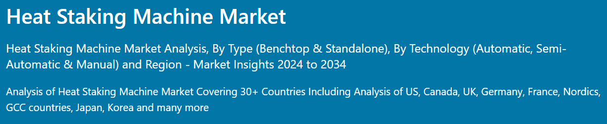 장기(2030~2034년): 전자 기기의 사용이 증가함에 따라 히트 스테이킹 기계 시장이 크게 성장할 것입니다. 전자 제품 생산이 확대됨에 따라 정확하고 신뢰할 수 있는 부품 조립에 대한 수요가 증가하고 있습니다. 히트 스테이킹 기계는 복잡한 전자 부품의 효율적인 하드웨어 없는 바인딩에 필수적이며, 첨단 제조 공정에서 더 높은 품질과 소형화를 추구하는 업계의 추진력을 뒷받침합니다.