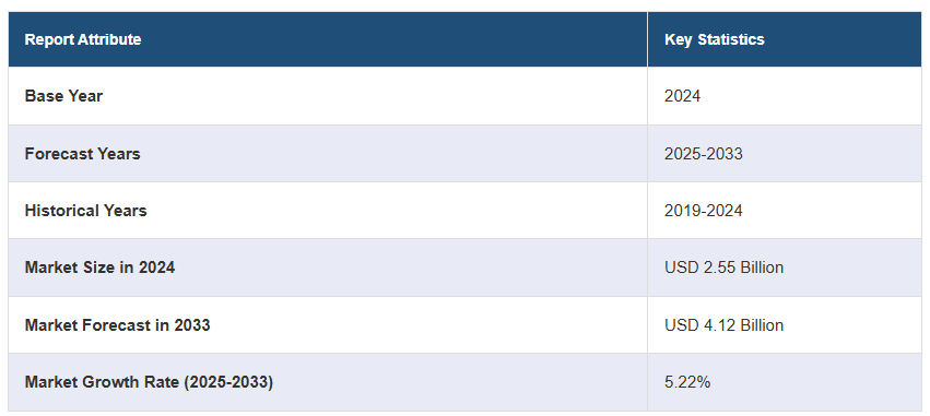 글로벌 헤모글로빈 검사 시장 규모는 2024년에 25억 5천만 달러에 달했습니다. IMARC 그룹은 2033년까지 시장 규모가 41억 2천만 달러에 달할 것으로 예상하고 있으며, 2025-2033년 동안 연평균 성장률(CAGR)이 5.22%에 달할 것으로 전망하고 있습니다. 당뇨병과 빈혈을 포함한 만성 질환의 증가가 시장을 자극하고 있습니다.