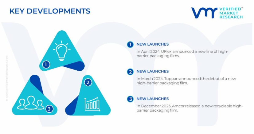 높은 장벽 포장 필름 시장은 시장 점유율을 놓고 경쟁하는 다양한 업체들이 특징인 역동적이고 경쟁적인 공간입니다. 이 업체들은 협업, 합병, 인수, 정치적 지원 등의 전략적 계획을 채택하여 그들의 입지를 공고히 하기 위해 노력하고 있습니다.