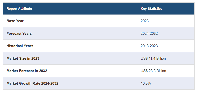 전 세계 고에너지 레이저 시장 규모는 2023년에 114억 달러에 달했습니다. 앞으로 IMARC 그룹은 2024~2032년 동안 10.3%의 성장률(CAGR)을 보이며 2032년까지 시장이 283억 달러에 달할 것으로 예상하고 있습니다. 군 기관의 정밀 타겟팅 및 방어 솔루션에 대한 수요 증가가 시장을 자극하고 있습니다.