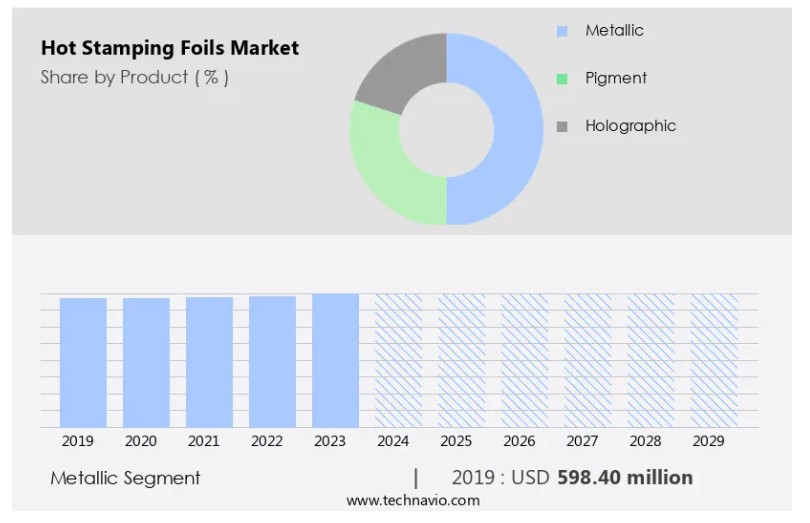 저희 연구원들은 2024년을 기준 연도로 하여 주요 동인, 추세, 도전과제를 분석했습니다. 동인에 대한 전체적인 분석은 기업이 경쟁 우위를 확보하기 위해 마케팅 전략을 개선하는 데 도움이 될 것입니다. 소비자 가전 부문에서 이러한 포일은 장치에 로고와 브랜드를 추가하는 데 사용됩니다. 섬유 산업에서는 다양한 직물에 디자인과 로고를 추가하는 데 핫 스탬핑 포일을 사용하여 우아함과 세련미를 더합니다. 편의 식품 산업에서는 핫 스탬핑 포일을 사용하여 포장지에 제품 정보와 브랜드를 추가하여 소비자의 관심을 끌고 있습니다. 핫 스탬핑 포일은 금속성 및 비금속성 포일을 포함하여 다양한 유형으로 제공됩니다.