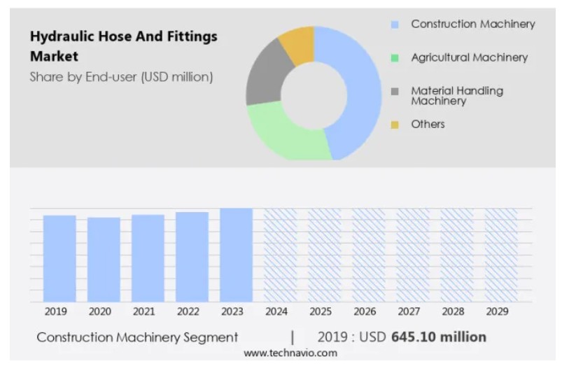 이 시장은 굴착기, 압축기, 콘크리트 및 시멘트 기계, 드릴링 리그, 휠 로더 등 건설 프로젝트에 사용되는 다양한 유형의 기계에 필수적인 구성 요소인 유압 호스와 피팅을 포함합니다. 이 시장의 성장은 주로 선진국과 신흥 경제국의 인프라 개발에 의해 주도됩니다. 건설 부문의 확장은 저금리, 유리한 글로벌 경제 환경, 기관 투자자의 직접 부동산 투자 증가와 같은 요인의 영향을 받습니다. 예를 들어, 인도의 인프라 지출이 증가하고 있으며, 이로 인해 유압 호스 및 피팅을 포함한 건설 장비에 대한 수요가 증가하고 있습니다. 지속 가능성의 맥락에서 태양열 및 풍력 에너지와 같은 친환경 인프라 프로젝트도 시장 성장에 기여하고 있습니다.
