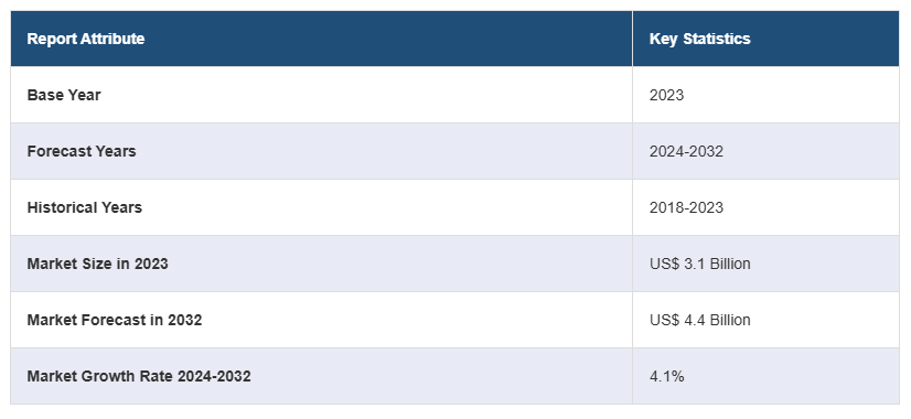 전 세계 수소 탈황 촉매 시장 규모는 2023년 31억 달러에 달했습니다. 앞으로 IMARC 그룹은 2024~2032년 동안 4.1%의 성장률(CAGR)을 보이며 2032년까지 시장이 44억 달러에 달할 것으로 예상하고 있습니다.
