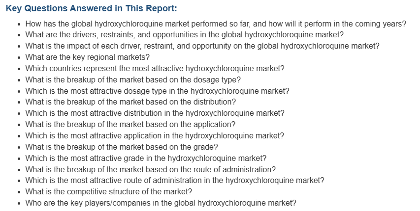히드록시클로로퀸 산업 부문화: