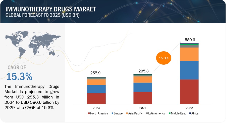 매출 기준 글로벌 면역치료제 시장 성장률은 2024년 2,853억 달러로 추정되며, 2024년부터 2029년까지 15.3%의 연평균 성장률로 성장하여 2029년에는 5,806억 달러에 달할 것으로 전망됩니다. 이 포괄적인 조사에는 업계 동향에 대한 철저한 조사, 세심한 가격 분석, 특허 조사, 컨퍼런스 및 웨비나에서 얻은 인사이트, 주요 이해관계자 파악, 시장 구매 역학에 대한 미묘한 이해 등이 포함됩니다.