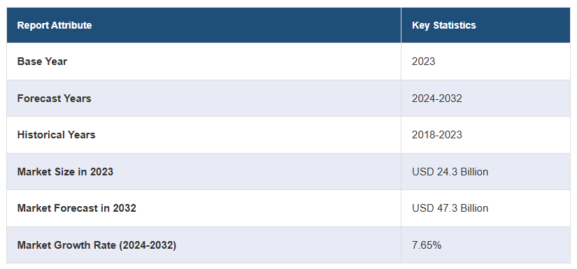 체외 수정 시장에 대한 연구는 2023년에 243억 달러 규모로 시작하여 2024년부터 2032년까지 연평균 7.65% 성장할 것으로 예상되며, 2032년까지 473억 달러에 이를 것으로 전망하고 있습니다. 이러한 성장은 유전자 스크리닝 기술의 통합, 가임력 보존 방법의 인기 증가, 맞춤형 불임 치료에 대한 관심 증가 등으로 촉진되고 있습니다.
