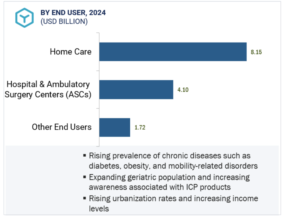 아시아 태평양 시장의 급속한 성장은 주로 일본, 중국, 한국 등 국가들의 급속한 인구 고령화, 당뇨병, 비만, 이동성 관련 장애 등 만성 질환의 유병률 증가, 그리고 이 지역 ICP 제조업체들의 확장에 기인합니다.