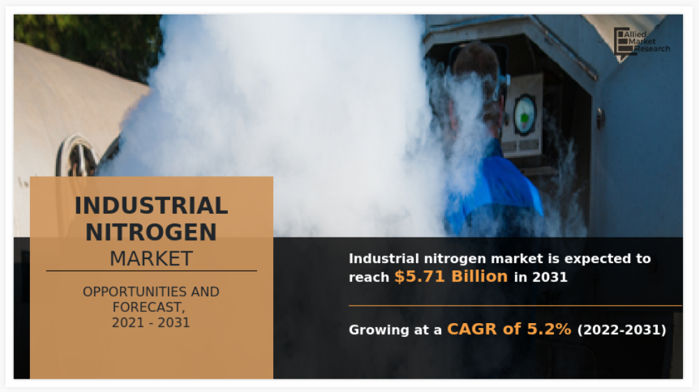 2021년 세계 산업용 질소 시장의 가치는 34억 7천만 달러였으며, 2031년에는 57억 1천만 달러에 이를 것으로 예상되며, 2022년부터 2031년까지 연평균 5.2%의 성장률을 보일 것으로 예상됩니다.