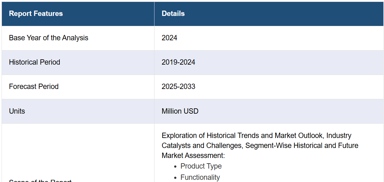 IMARC 그룹은 시장 각 세그먼트의 주요 동향 분석과 함께 2025-2033년 국가/지역별 전망을 제공합니다. 본 보고서는 제품 유형, 기능성, 소재, 크기, 최종 사용 산업별로 시장을 분류했습니다.
