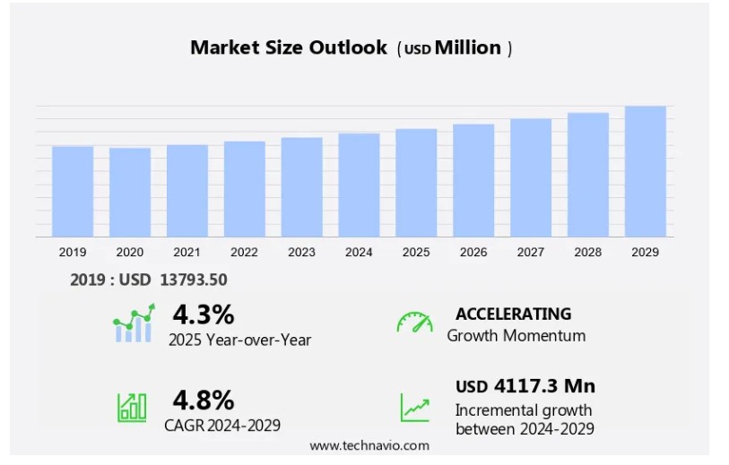 2025-2029년 사이에 시장은 41억 1,730만 달러 성장할 것으로 예상됩니다.