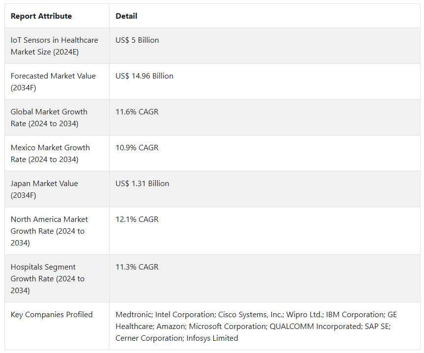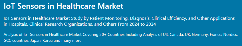 2024년부터 2034년까지 전 세계 의료 분야 IoT 센서 수요는 연평균 11.6% 증가할 것으로 예상됩니다.