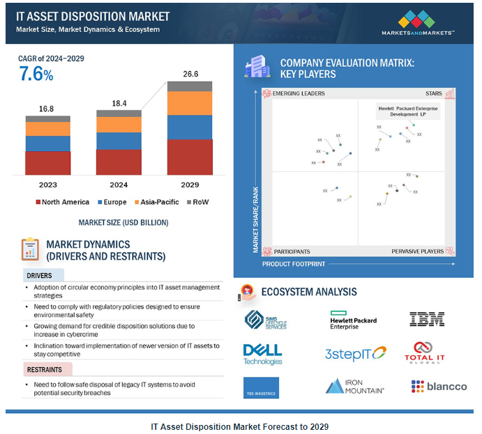 (미국); IBM (미국); 휴렛 팩커드 엔터프라이즈 개발 LP (미국); 아이언 마운틴, Inc. (미국); 심스 제한 (호주); 3stepIT (핀란드); TES (싱가포르); 앱토 솔루션 (미국); 라이프스팬 인터내셔널 (미국)과 같은 글로벌 플레이어가 IT 자산 처분 회사를 지배하고 있습니다. (미국); Total IT Global (영국); Flex IT Distribution (네덜란드); Ingram Micro (미국); CSI Leasing, Inc. (미국); Inrego AB (스웨덴); Tier1 (영국); Atea (노르웨이); OceanTech (미국); Blancco Technology Group (미국); Renewtech (네덜란드); BRP Infotech Pvt. (인도), CHG-MERIDIAN(독일), Park Place Technologies(미국), TBS Industries Inc.(미국), ReluTech(미국), Prolimax(네덜란드) 등이 있습니다. 이러한 업체들은 시장 성장을 위해 서비스 출시/개발, 계약, 협업, 계약 및 인수를 채택했습니다.