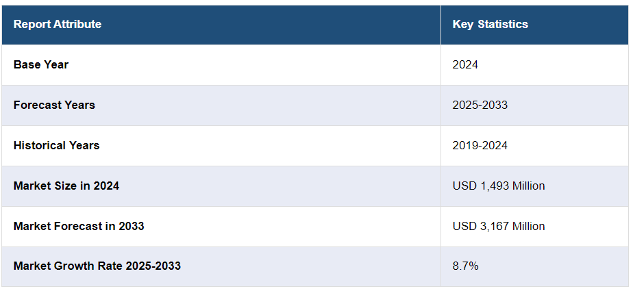 일본 다관절 로봇 시장 규모는 2024년 1,493백만 달러에 달했습니다. 앞으로 IMARC 그룹은 2025-2033년 동안 8.7%의 성장률 (CAGR )을 보이며 2033년까지 시장 규모가 3,167백만 달러에 달할 것으로 예상하고 있습니다.