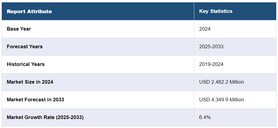 일본 전기강판 시장 규모는 2024년 2,482.2백만 달러에 달했습니다. 앞으로 IMARC 그룹은 2025-2033년 동안 6.4%의 성장률 (CAGR) 을 보이며 2033년까지 시장 규모가 4,349.9백만 달러에 달할 것으로 예상하고 있습니다. 재생 가능 자원의 활용을 촉진하기 위한 정부 이니셔티브의 장려와 특히 외딴 지역에서 효율적인 전력 전송에 대한 수요가 증가함에 따라 시장은 긍정적인 전망을 보이고 있습니다.
