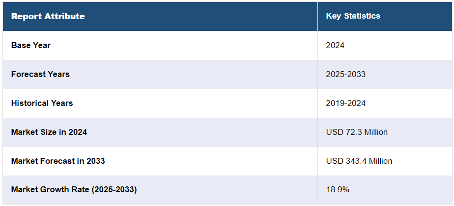 일본 EV 충전 케이블 시장 규모는 2024년 7,230만 달러로 평가되었습니다. 앞으로 IMARC 그룹은 2025~2033년 동안 18.9%의 연평균 성장률을 보이며 2033년까지 시장이 3억 4340만 달러에 달할 것으로 예상하고 있습니다. 이 시장은 주로 전기 자동차 채택 증가, 탄소 중립을 촉진하는 정부 인센티브 및 정책, 충전 인프라 확대, 초고속 충전 기술의 발전, 충전 시스템에 재생 에너지 통합, IoT 지원 스마트 솔루션에 대한 수요, 제조업체와 인프라 개발자 간의 전략적 협업에 의해 주도되고 있습니다.