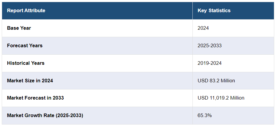 일본 로보택시 시장 규모는 2024년 8,320만 달러에 달했습니다. 앞으로 IMARC Group은 2025~2033년 동안 65.3%의 성장률 (CAGR )을 보이며 2033년까지 시장 규모가 11,019.2백만 달러에 달할 것으로 예상하고 있습니다. 이 시장은 교통 혼잡 문제 증가, 로보택시 서비스 개발을 위한 견고한 기반을 제공하는 규제 및 법적 구조의 존재와 같은 중요한 요인에 의해 주도되고 있습니다.